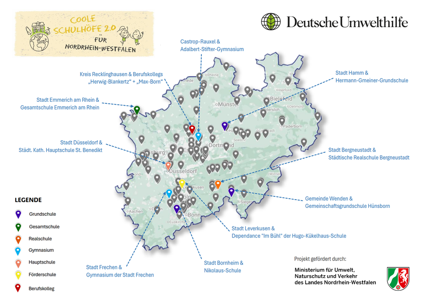 Was für eine tolle Nachricht erreichte uns in dieser Woche: Gemeinsam mit neun anderen Schulen wurden wir in das Förderprogramm "Coole Schulhöfe 2.0" aufgenommen. Das war so nicht zu erwarten - immerhin gab es mehr als 130 Bewerbungen aus ganz Nordrhein-Westfalen. Aber die Idee eines naturnahen Forscherhofs, die wir schon seit einiger Zeit gemeinsam mit der benachbarten Kindergarten-Uni "Unterm Regenbogen" bearbeiten, hat die Fachjury offenbar überzeugt. Mit dem Preis verbunden ist eine Anschubfinanzierung von 20 000 Euro und Projektbegleitung bis ins Jahr 2027.